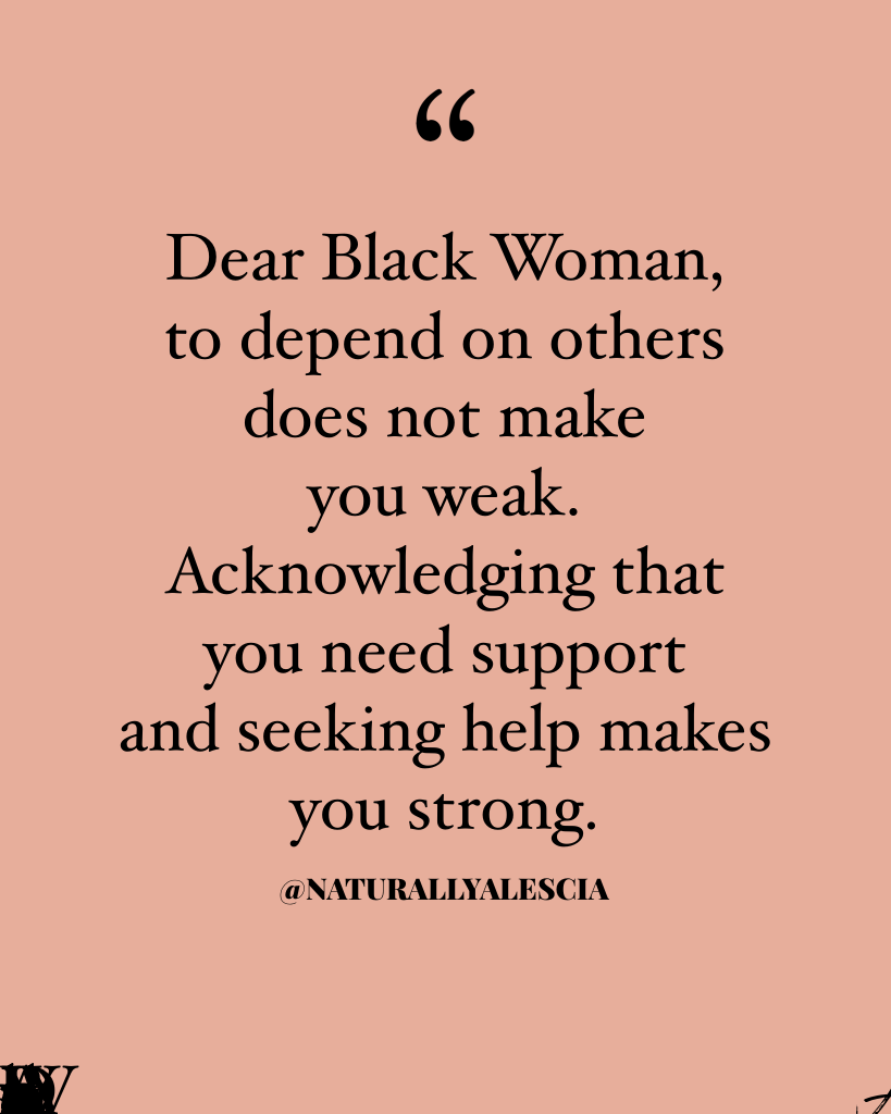I am a Strong Black Woman who leans into and welcomes the resources and support of my community. I am redefining the narrative of strength.